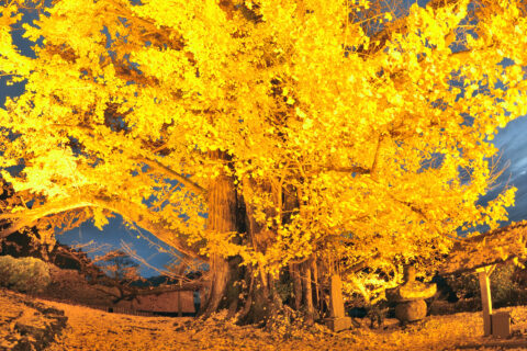 下城大イチョウライトアップ 期間:10/16(木)~11/16(日) 時間:PM5:30~PM9:30 ◆下城滝・鍋釜滝のライトアップも同時開催 昨年は大イチョウの一部の枝が折れ、安全性を重視する為、 ライトアップは中止…